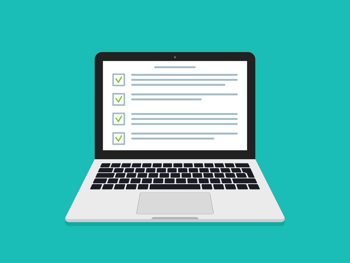 Laptop drawing with an Agile PM Exam on screen